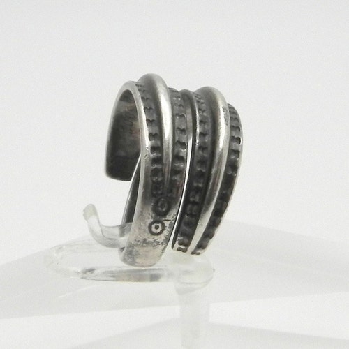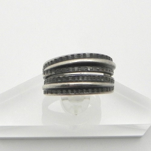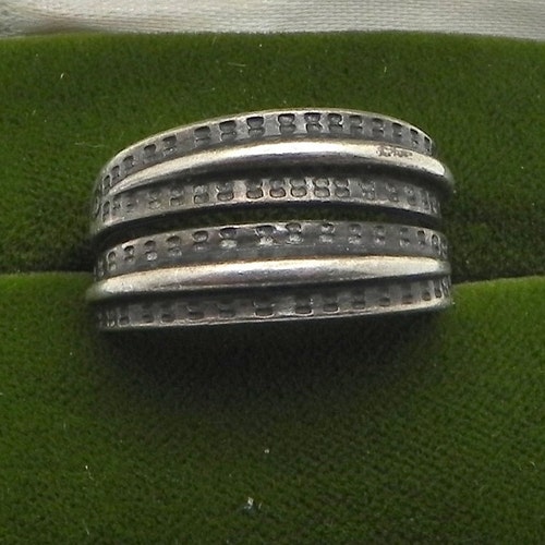 David Andersen 925 "Saga" Ring ~ Viking Norway ~ Size shops 7 1/2 For your consideration, we are offering this special "Saga" ring by David Anderson. This ring is so fun because it is a copy of a Viking ring made in the year 300, and thought to have belonged to a woman of nobility, (the original one was)! This unique ring weighs 6.2 grams. There is no adjustability or flexibility in this ring, making it a solid size of 7 1/2. The inside of the ring is marked "Copy orig, year 300", and "D-A Norway Sterling 925 S". This is such a fun ring with the 2 tiers of silver and the dot details around the raised parts of the shank! Don't miss out on this remarkably regal ring!