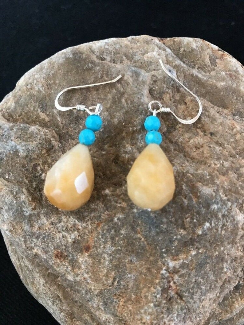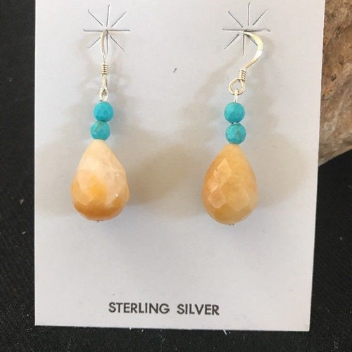 Shops Navajo Sterling Silver Turquoise Golden Jade Bead Dangle Drop Earrings, Navajo Sterling Silver Turquoise Golden Jade Bead Dangle Drop Earrings orders