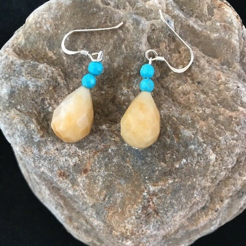 - Navajo Sterling Silver Turquoise Golden Jade Bead Dangle Drop Earrings