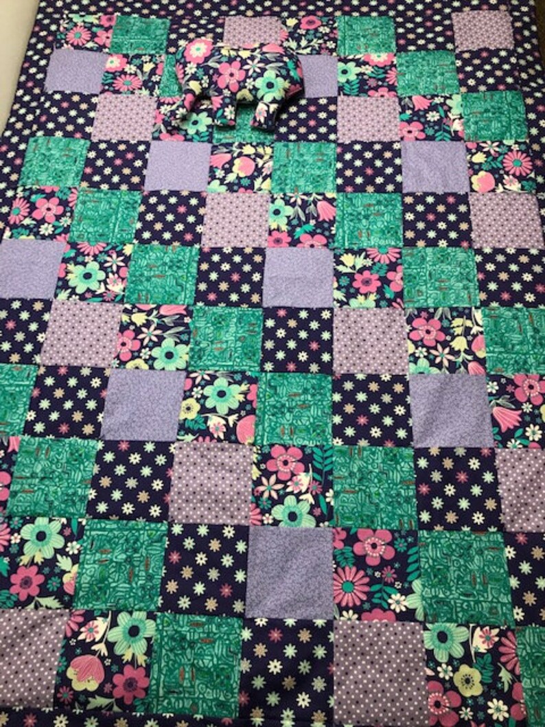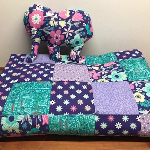 - Baby quilt with matching fun animal pillow, boy/girl, Purple, Pink, Flowers, elephant, Crib and Toddler