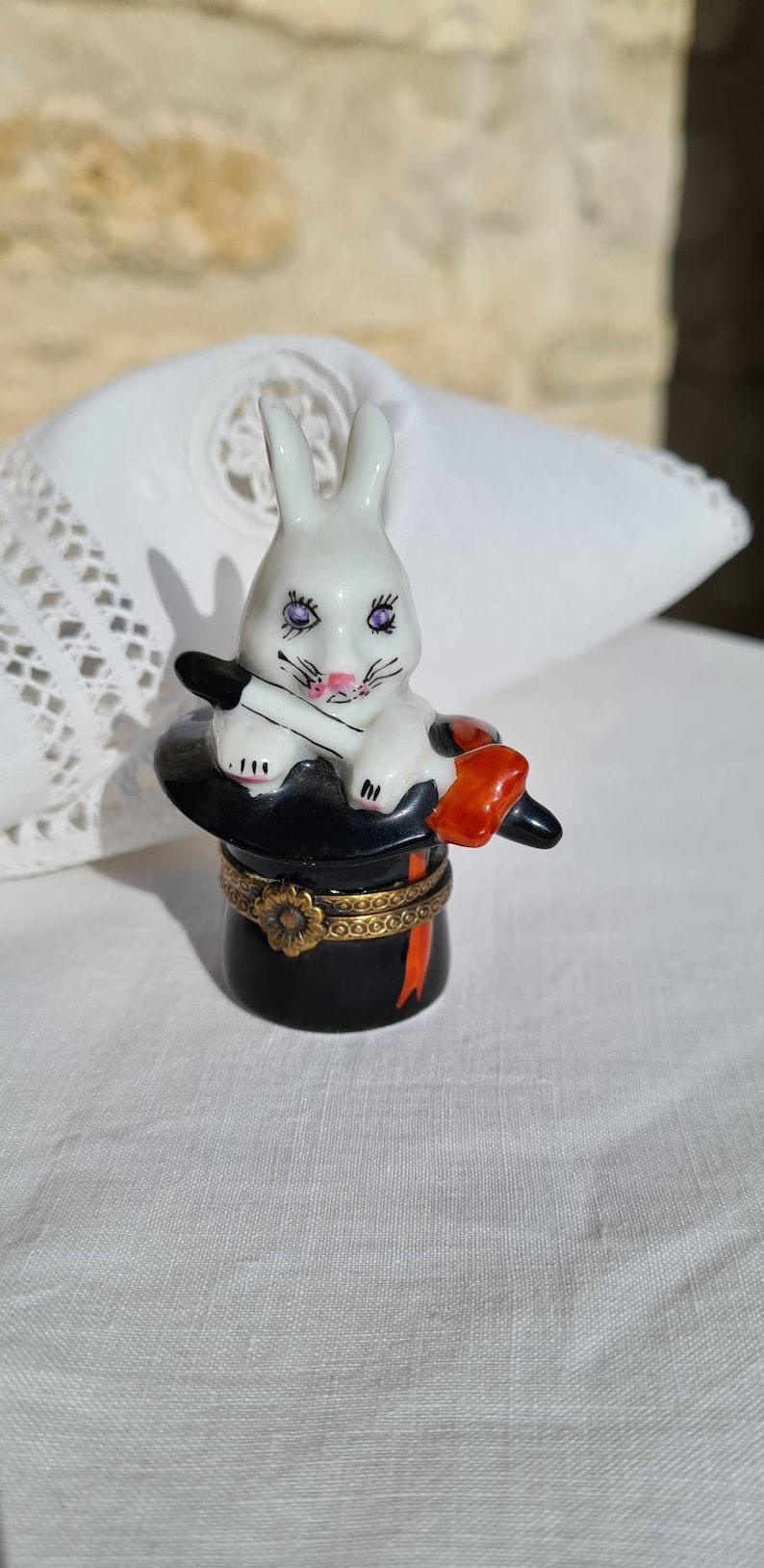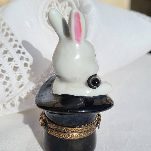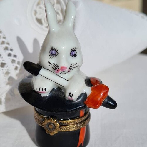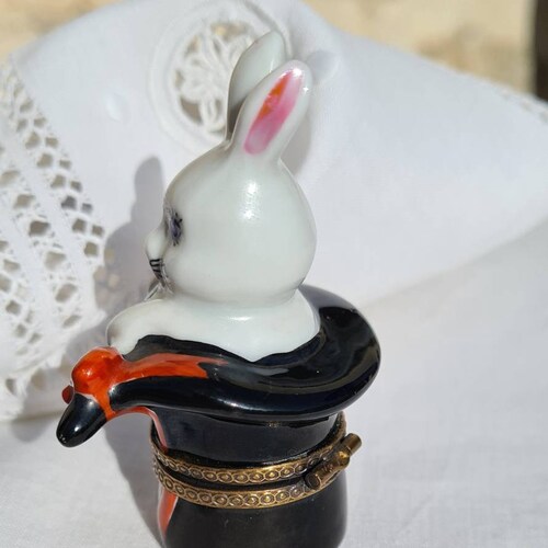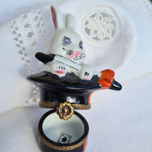 - Vintage porcelain Limoges trinket box hand painted by Chanille magician Rabbit comes out of the hat