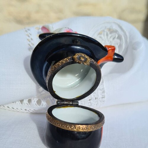 Vintage porcelain Limoges trinket box hand painted by Chanille magician Rabbit comes out shops of the hat, Vintage porcelain Limoges trinket box hand painted by Chanille magician Rabbit comes out of the hat orders