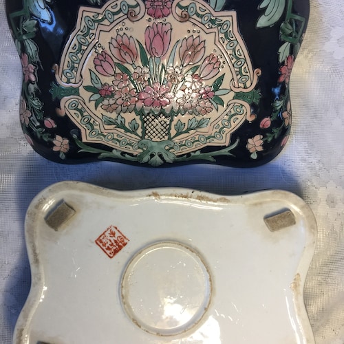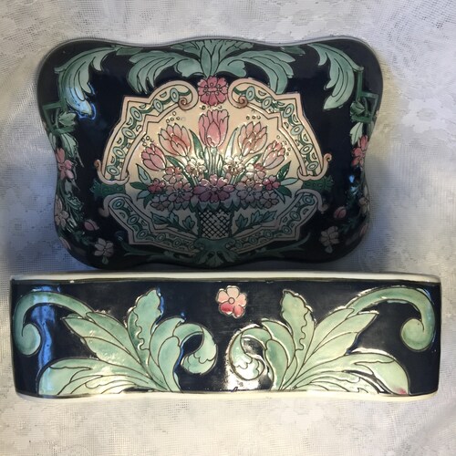 Large chinoiserie floral shops trinket porcelain box storage organization jewelry box