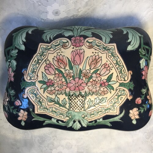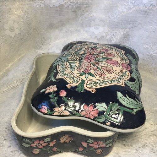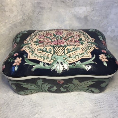 Large chinoiserie floral shops trinket porcelain box storage organization jewelry box, Large chinoiserie floral trinket porcelain box storage organization jewelry box offers