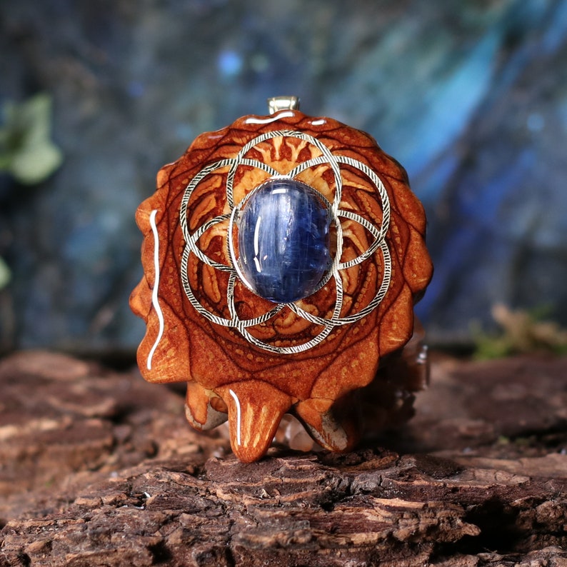 Pinecone shops Pendant with Kyanite (Blue) and Gold Seed of Life (Medium) by Third Eye Pinecone