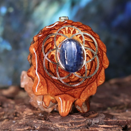 Pinecone shops Pendant with Kyanite (Blue) and Gold Seed of Life (Medium) by Third Eye Pinecone Every Pinecone Pendant is an elegant gift from Mother Nature -- this Pinecone Pendant features a beautiful Blue Kyanite perfectly set to the center of the pendant. Our Pinecone Necklaces come with Faux Leather Cording with upgradable chain options listed below.