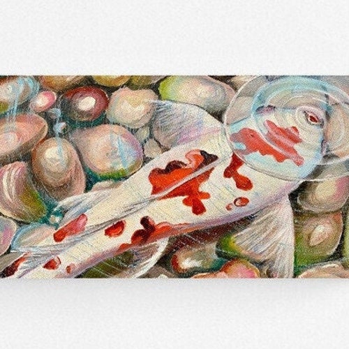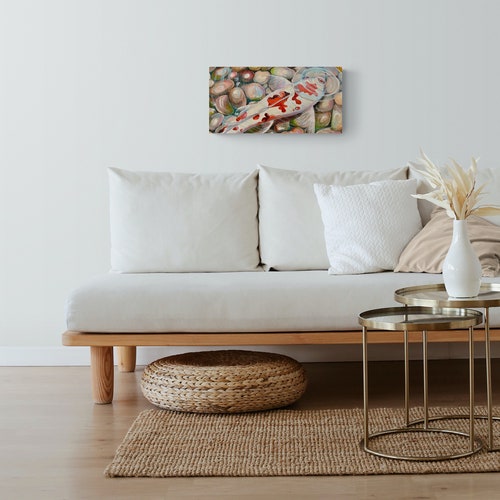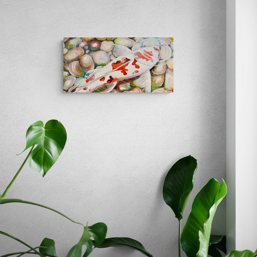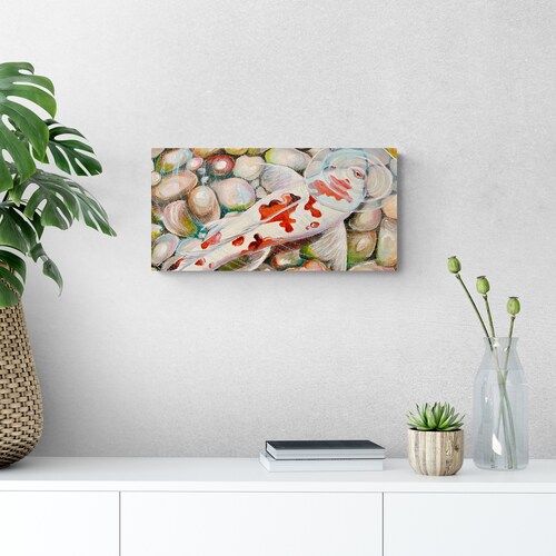 Fine art shops print on stretched canvas, "Koi Amongst the Rocks" 20"x10" print of original acrylic painting, Fine art print on stretched canvas, "Koi Amongst the Rocks" 20"x10" print of original acrylic painting discounts