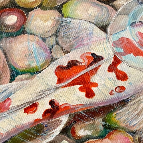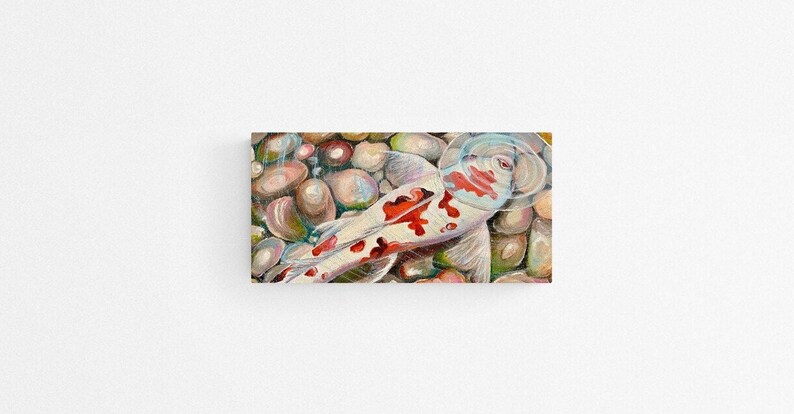 - Fine art print on stretched canvas, "Koi Amongst the Rocks" 20"x10" print of original acrylic painting