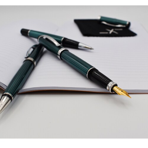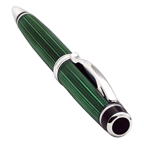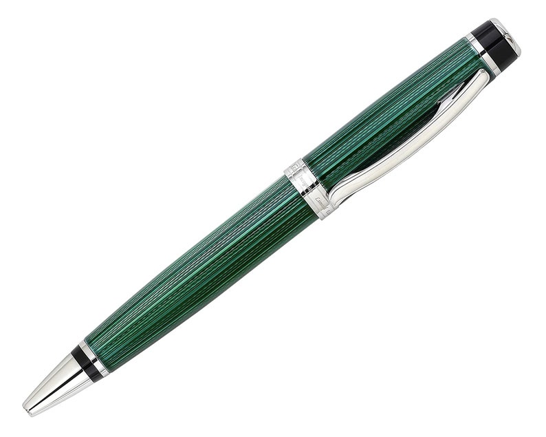 Xezo Incognito Serialized Brass Ballpoint Pen in Forest Green Lacquer, Diamond-Cut shops Engraved. Handmade The Incognito series of pens was created with the goal to produce a quality, weight-balanced luxury pen with a comfortable grip. The weight distribution of the pen's body was designed to allow for the friction to be minimized at the tip of the pen. This series is produced in limited edition and each pen is individually numbered by engraving. Each pen is produced with .999 platinum-plated fittings, and the body is made of solid brass with diamond cut engraving. The ball pen features twist functionality, and the parts, including the refill, are German-made.