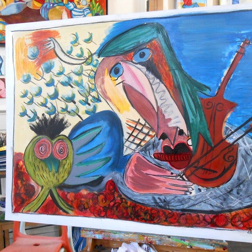 Big shops Wall Art Owl, Head, Violin painting on heavy paper, 100 x 70 cm, Acrylic on paper, Big Wall Art Owl, Head, Violin painting on heavy paper, 100 x 70 cm, Acrylic on paper factory