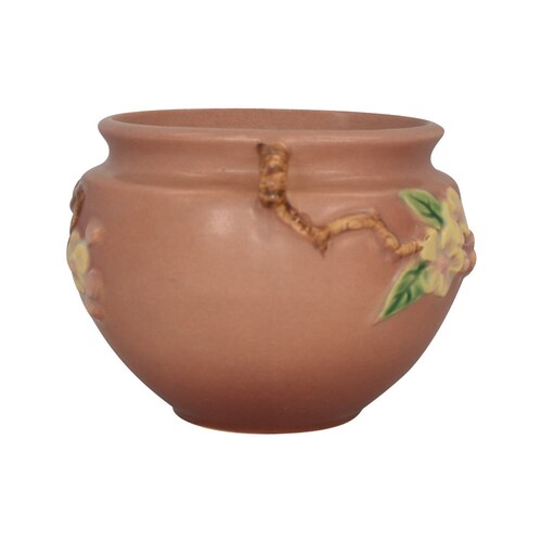 - Roseville Apple Blossom Pink 1949 Mid Century Pottery Jardiniere Planter 300-4