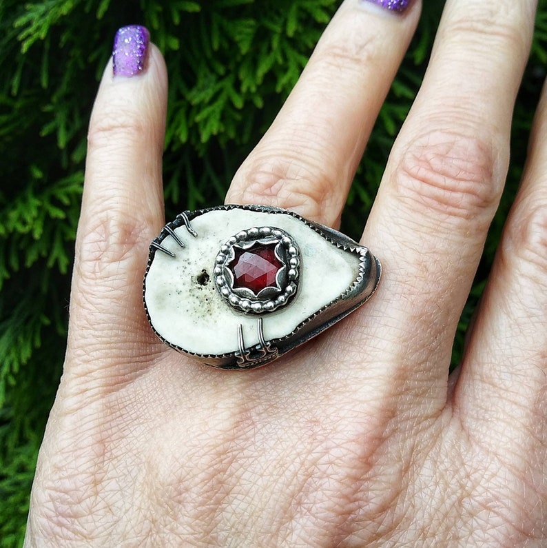 Deer Antler shops Ring with Garnet, Deer Antler Ring with Garnet save