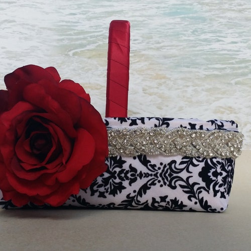 Damask & Rose Flower Girl shops Basket- Your choice of ribbon color - Wedding - Bling Rhinestone Crystal Diamond Flowergirl Ringbearer Ring Bearer, Damask & Rose Flower Girl Basket- Your choice of ribbon color - Wedding - Bling Rhinestone Crystal Diamond Flowergirl Ringbearer Ring Bearer good