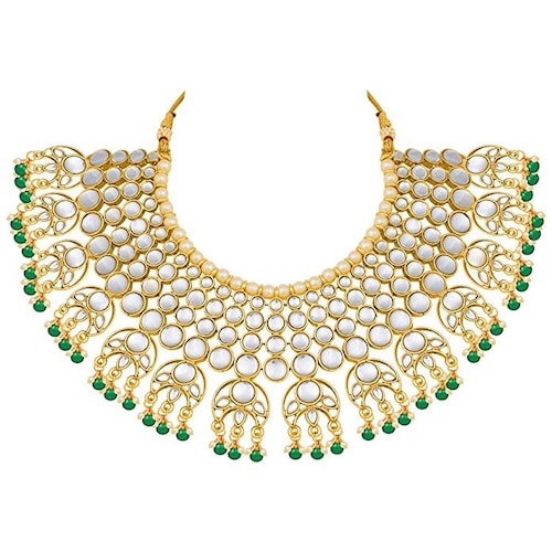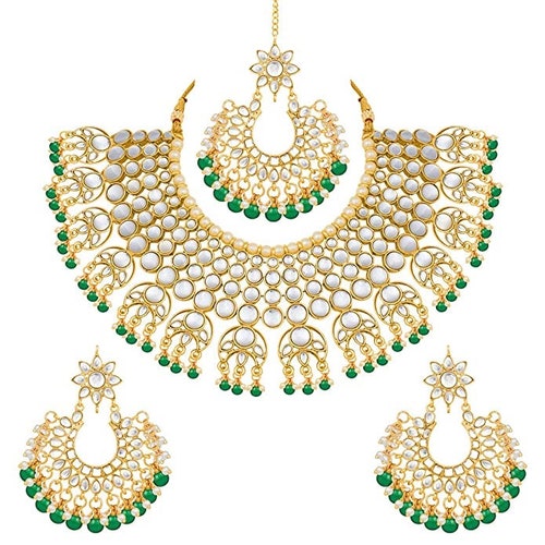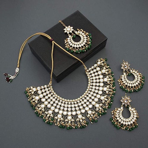 - Sabyasachi Inspired Green Bridal Jewellery Set | Indian Bridal Necklace Set | Bollywood Heavy Choker Necklace | Jodha Akbar Kundan Necklace