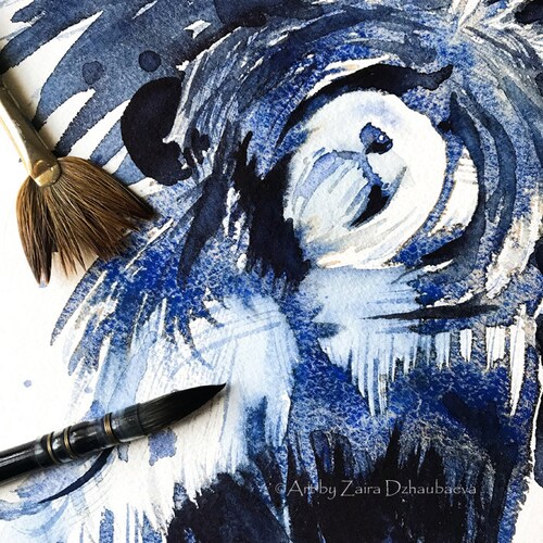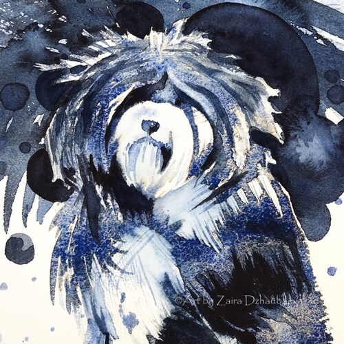 - Old English Sheepdog Original Watercolor Painting Bobtail Dog British Herding Dogs Fluffy Dog Blue Abstract Background Canine Dog Lover Gift