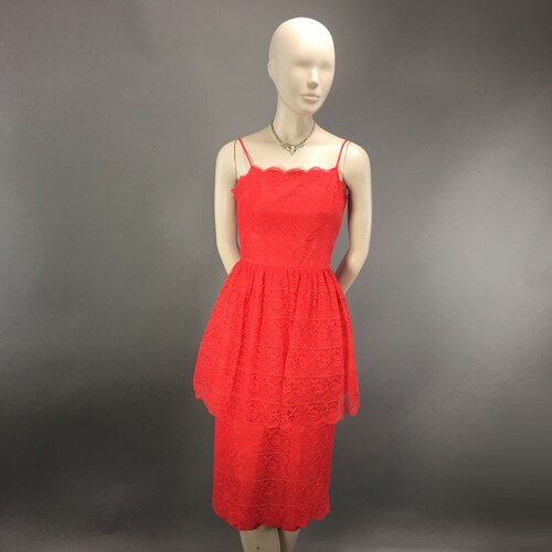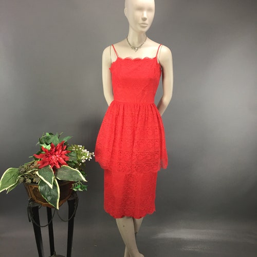 XS 1950s Red Lace Peplum Dress, Spaghetti Strap Party Cocktail Mid shops Century Formal Dress,Built in Bra, XS 1950s Red Lace Peplum Dress, Spaghetti Strap Party Cocktail Mid Century Formal Dress,Built in Bra top
