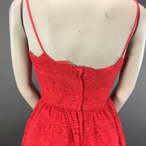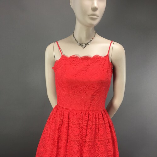 XS 1950s Red Lace Peplum Dress, Spaghetti Strap Party Cocktail Mid shops Century Formal Dress,Built in Bra