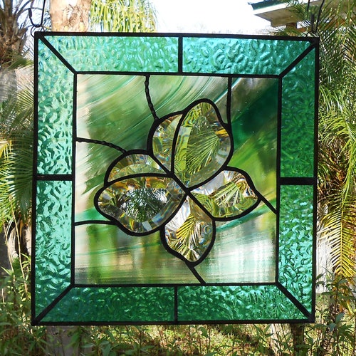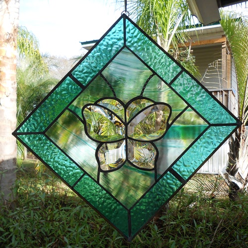 - Stained Glass Suncatcher, Glass Yard Art, Butterfly Stained Glass Panel, Beveled Glass Butterfly Suncatcher, Garden Flag, Window Treatment