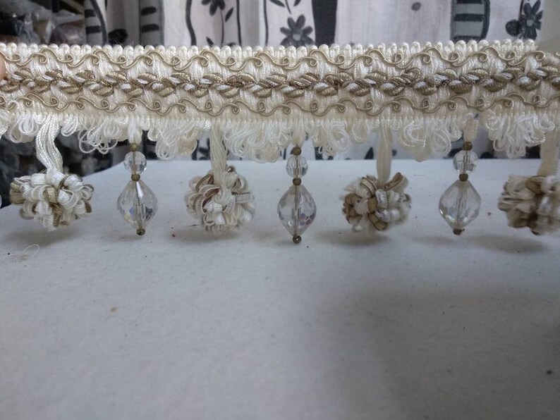 25 meter Value shops packs Beaded trim fringe | 8 cm height | beaded trim | curtain trim | fringe trim with beads and balls, 25 meter Value packs Beaded trim fringe | 8 cm height | beaded trim | curtain trim | fringe trim with beads and balls buying