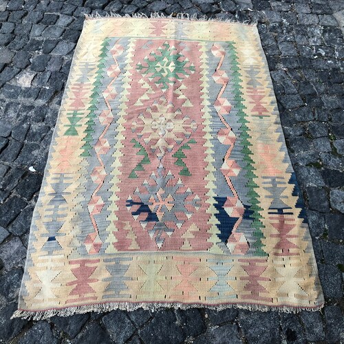 - 3.5x5.4 ft, Turkish Kilim Rug, Oushak Rug, Handmade Rug, Bedroom Rug, Pink Rug, Morrocan Rug, Neutral Rug, Southwestern Rug, Beni Ourain Rug