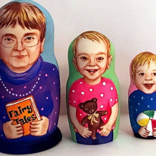 Shops Grandmother nesting doll 5pcs/Two grandmothers/Custom nesting doll of 5/Portrait nesting set/Personalized nesting doll/Baby nesting doll