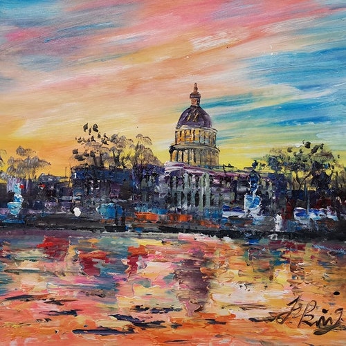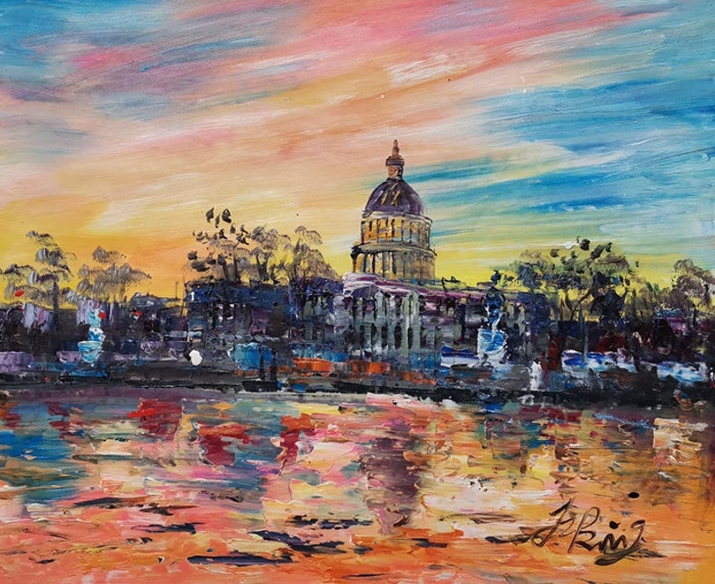 Capitol Hill at Dawn, Washington DC-Pen King-A2466-Home Decor Holiday Artwork Texture Painting Dining Wall shops Art, Capitol Hill at Dawn, Washington DC-Pen King-A2466-Home Decor Holiday Artwork Texture Painting Dining Wall Art store