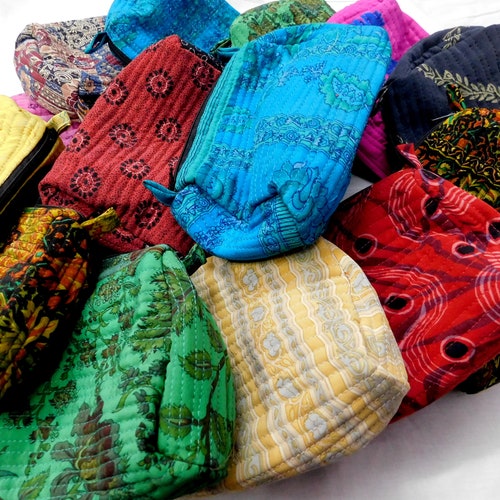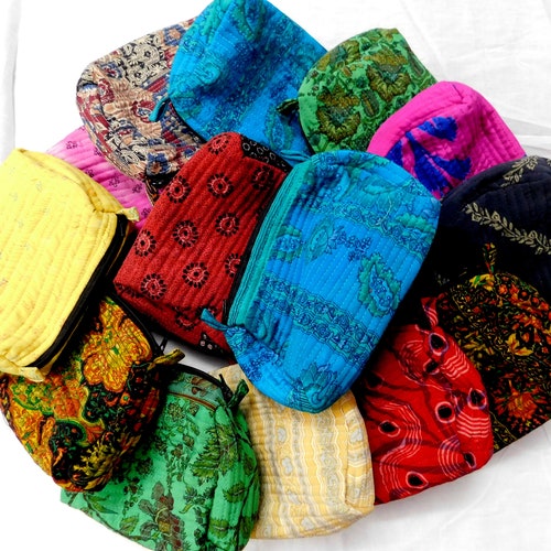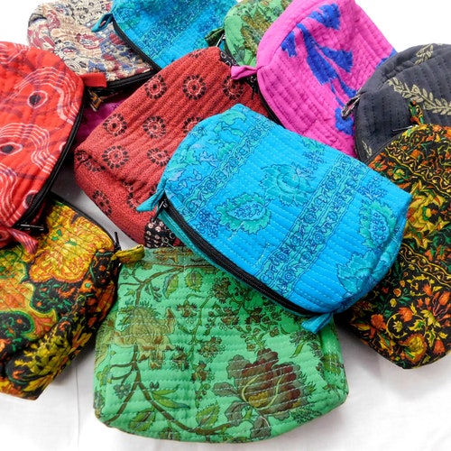 - Vintage silk cosmetic bags, indian handmade vintage silk sari make up bag, silk toilet bag, hand carry cosmetic clutch 10 pcs wholesale lot