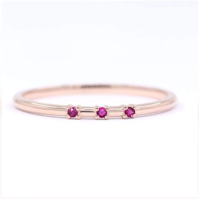 - 3 Ruby 1.2 mm Gold Band / 14k Real Gold Stack Ring / Dainty Ruby Band / Ruby Wedding Band / Ruby Ring / 14k Gold Wedding Band / Gold Ring