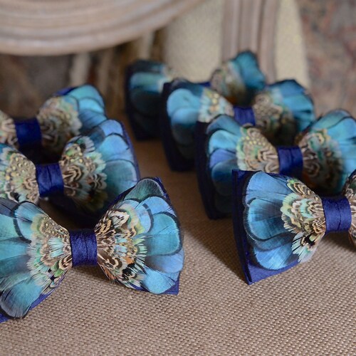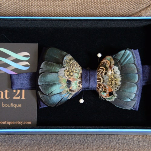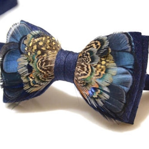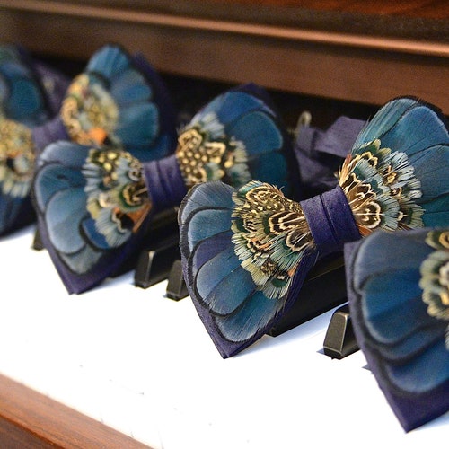 - Feathered Wedding bowties Mens Navy Blue Feathered Bow Ties Custom and Unique Bow Tie Designed by at21boutique handmade in USA Tie Bow Groom