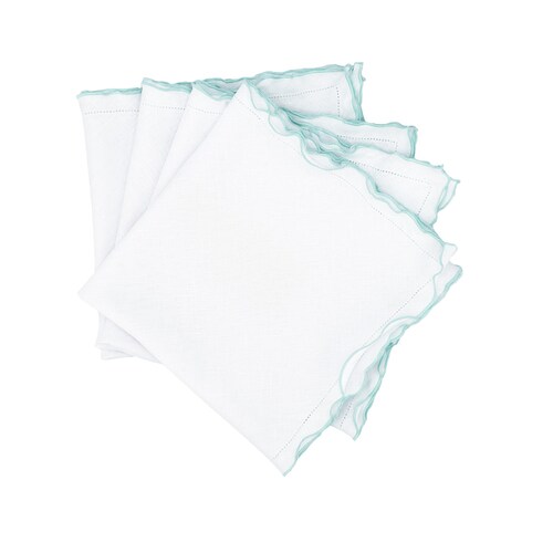 Linen Napkins With Green Scalloped Hemstitch Edges, Set of shops 4