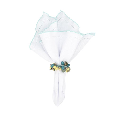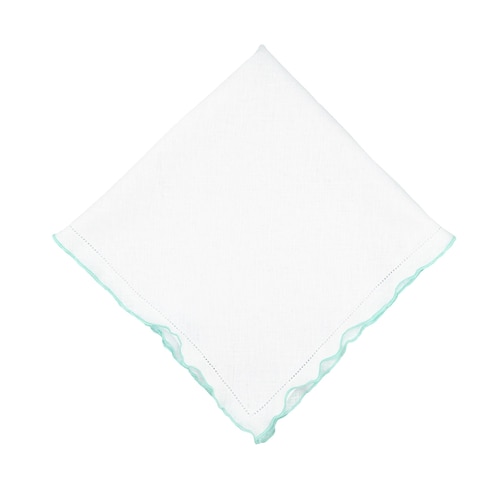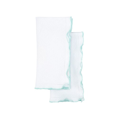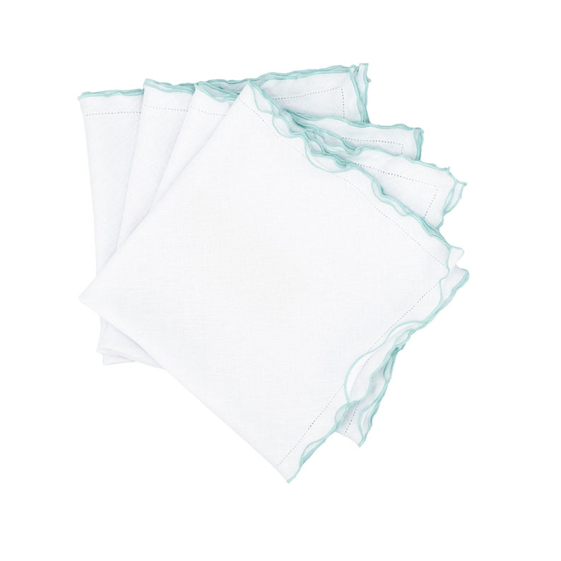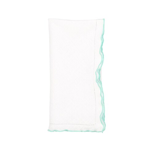 - Linen Napkins With Green Scalloped Hemstitch Edges, Set of 4
