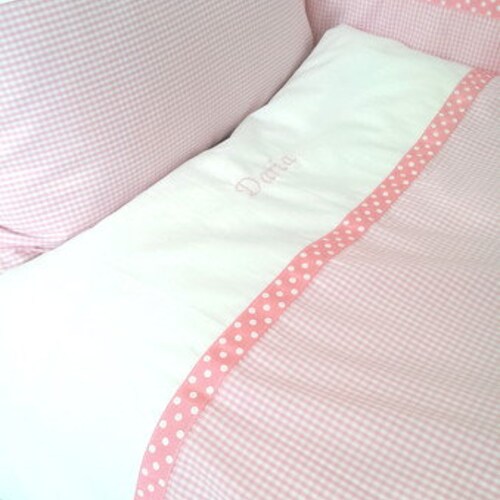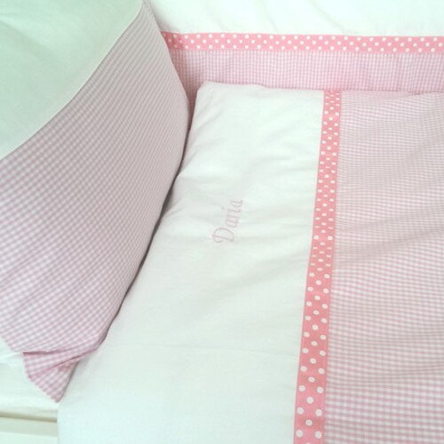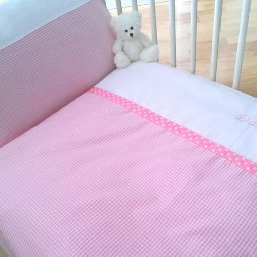 Shops Baby Bedding 100 x 135 Vichy Rosa + Name, Baby Bedding 100 x 135 Vichy Rosa + Name discount