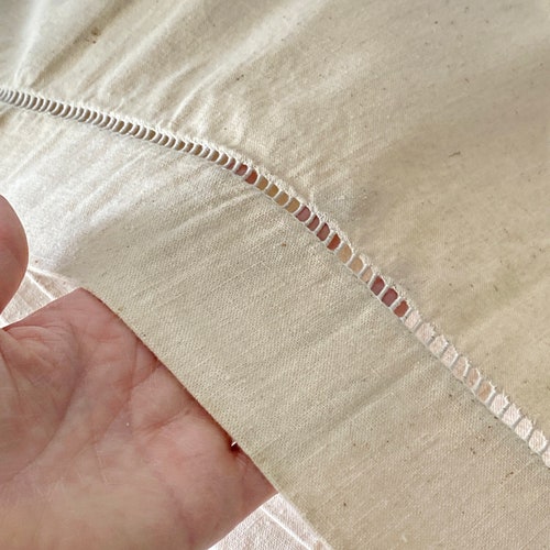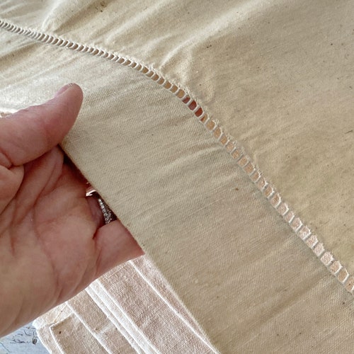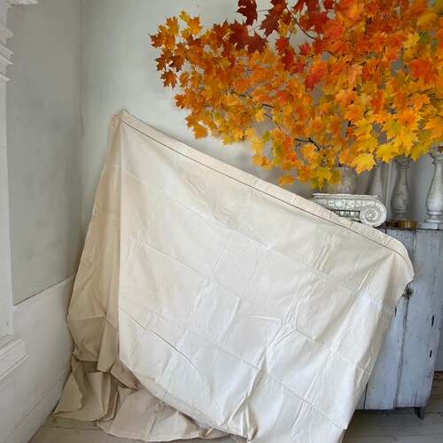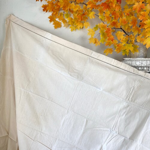- Antique vintage French linen sheet fabric material Shower curtain Tablecloth upholstery bedcover curtain The Textile Trunk