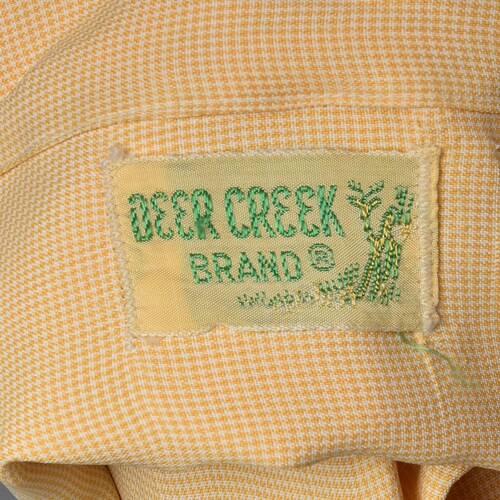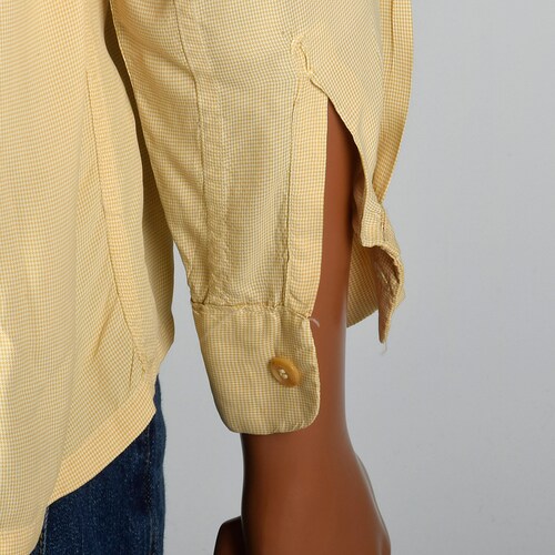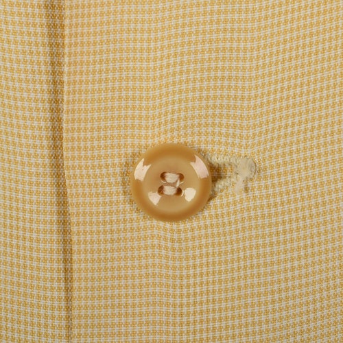 - Large 1950s Mens Yellow Micro Check Shirt Pointed Loop Collar Square Bottom Long Sleeve Vintage 50s Rockabilly Button Down