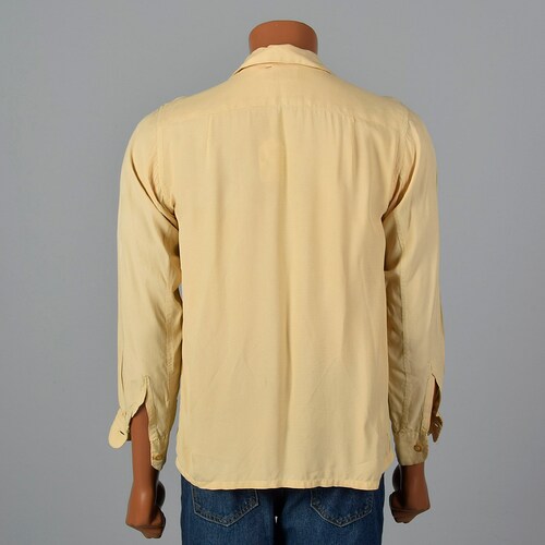 Large 1950s Mens Yellow Micro Check Shirt shops Pointed Loop Collar Square Bottom Long Sleeve Vintage 50s Rockabilly Button Down