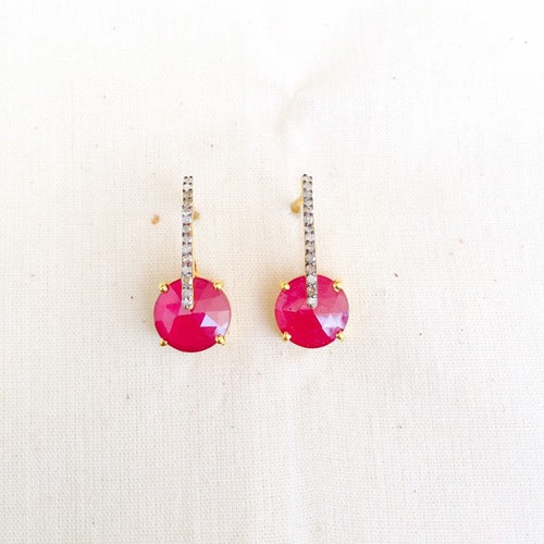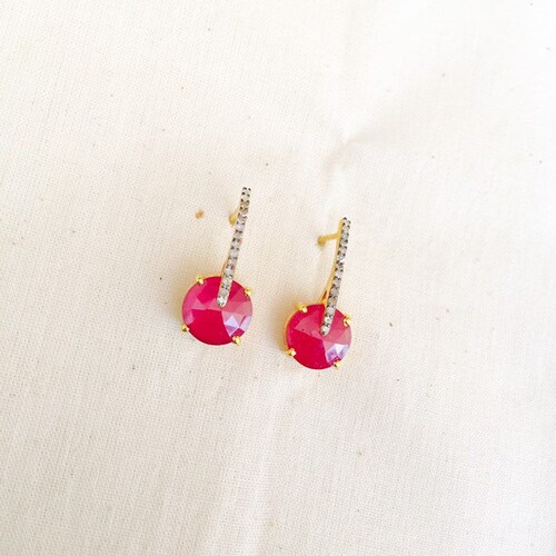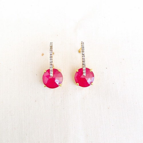 Diamond & Ruby 14K Gold Vermeil Over Sterling Silver Earring shops, Diamond & Ruby 14K Gold Vermeil Over Sterling Silver Earring save