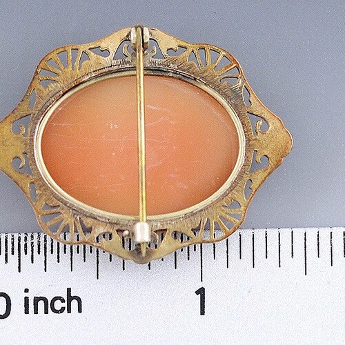 Pretty Victorian Gold Filled shops Filigree Hand Carved Shell Cameo Pin Brooch