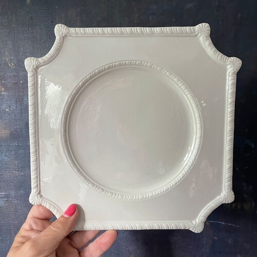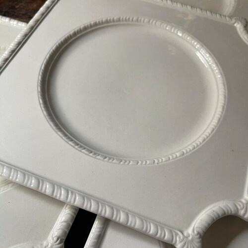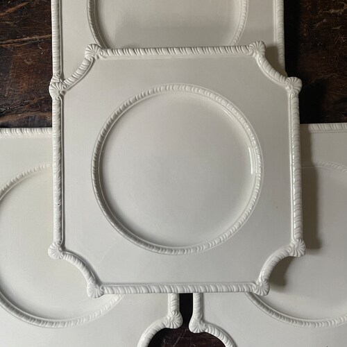 Set shops of Four (4) Italian White Plates in the Style of Carole Stupell, Set of Four (4) Italian White Plates in the Style of Carole Stupell order