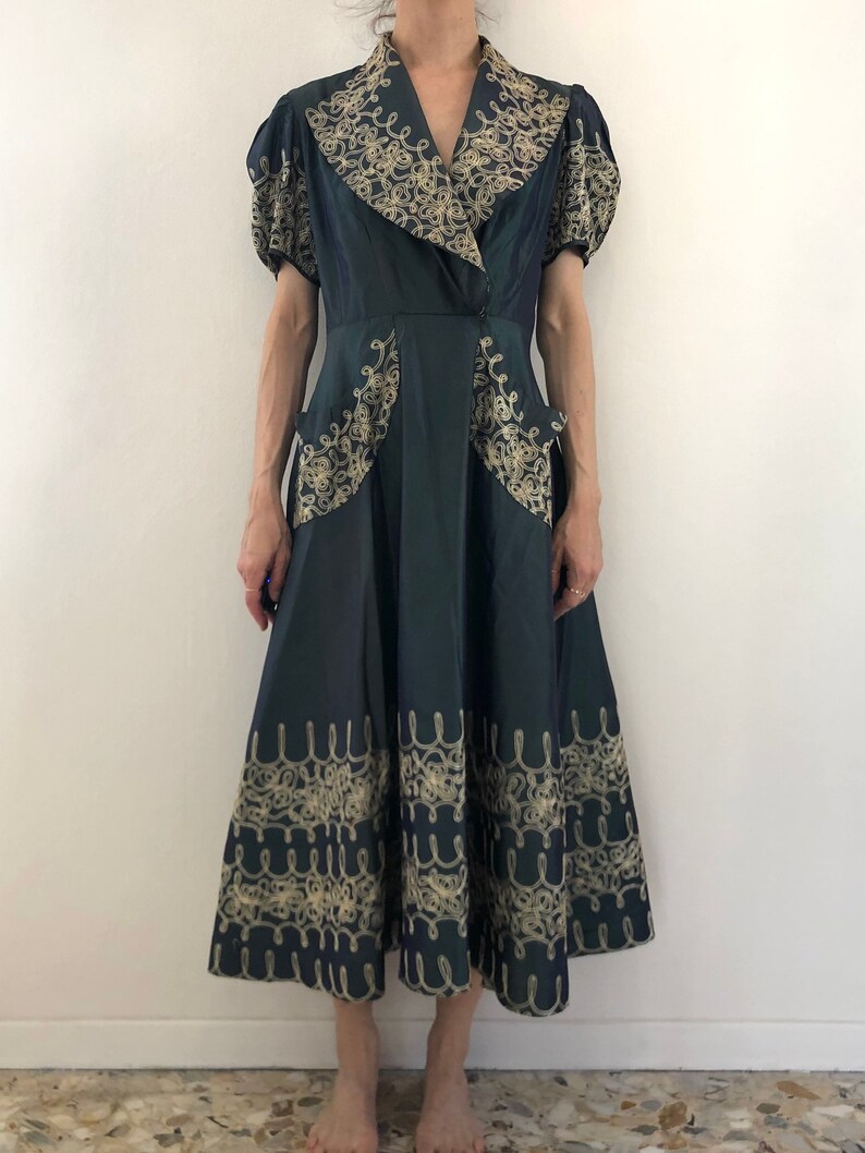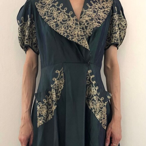 30s Blue Green shops Iridescent Taffeta Glamorous House Robe With Embroidery, 30s Blue Green Iridescent Taffeta Glamorous House Robe With Embroidery save