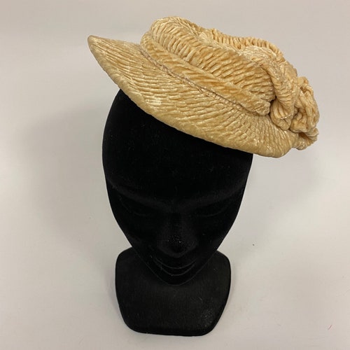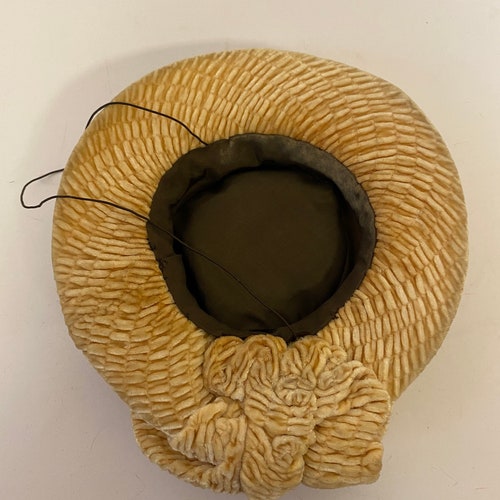 Vintage amazing 1930s wheat velvet silk fascinator shops hat, Vintage amazing 1930s wheat velvet silk fascinator hat outlet