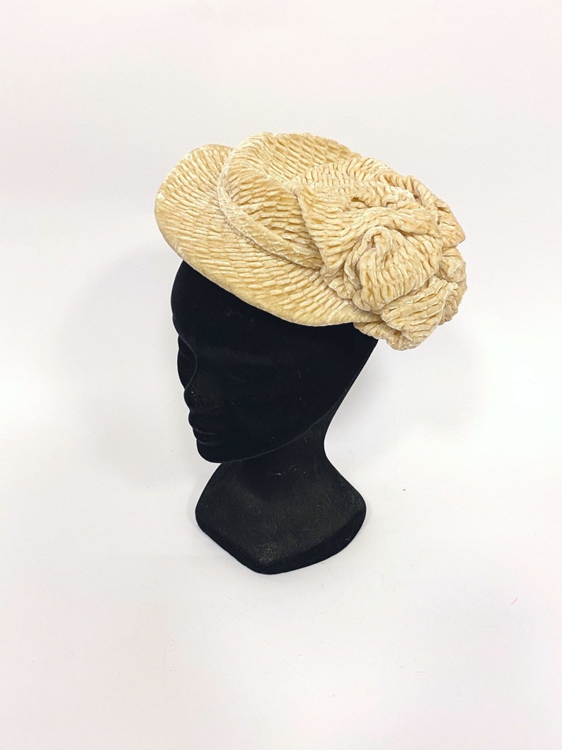 - Vintage amazing 1930s wheat velvet silk fascinator hat