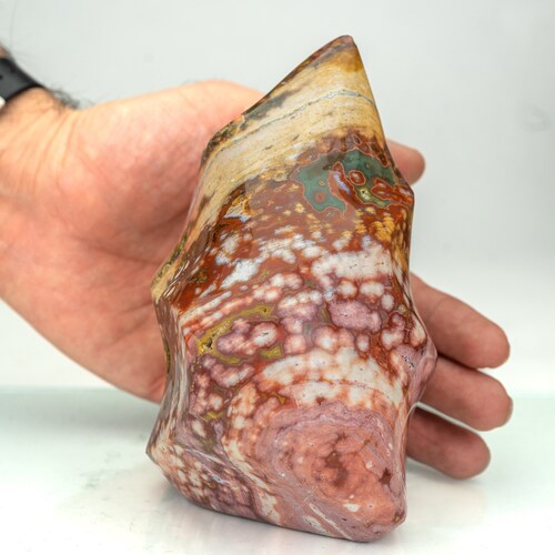 XL Druzy shops Ocean Jasper, orbicular Colorful Jasper Flame, Torch, Decoration reiki crystal