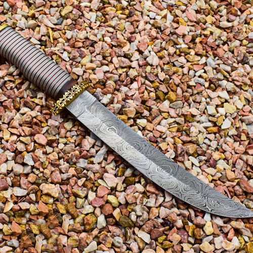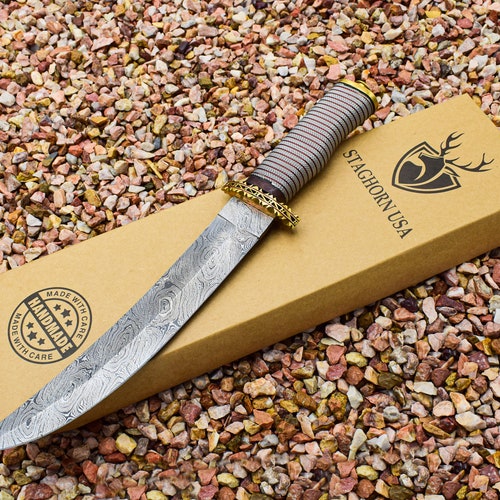 STAGHORN USA Handcrafted Damascus Steel Camping Knife For Collectors Spiral shops Copper &Stainless Steel Wire Sturdy Handle