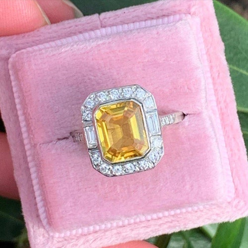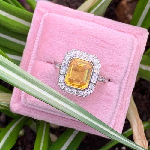 Vintage Yellow Sapphire Ring Halo Yellow Sapphire Ring 925 Sterling Silver Yellow Sapphire Ring ring for shops engagement wedding and gift, Vintage Yellow Sapphire Ring Halo Yellow Sapphire Ring 925 Sterling Silver Yellow Sapphire Ring ring for engagement wedding and gift shops
