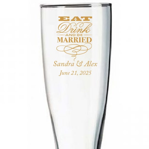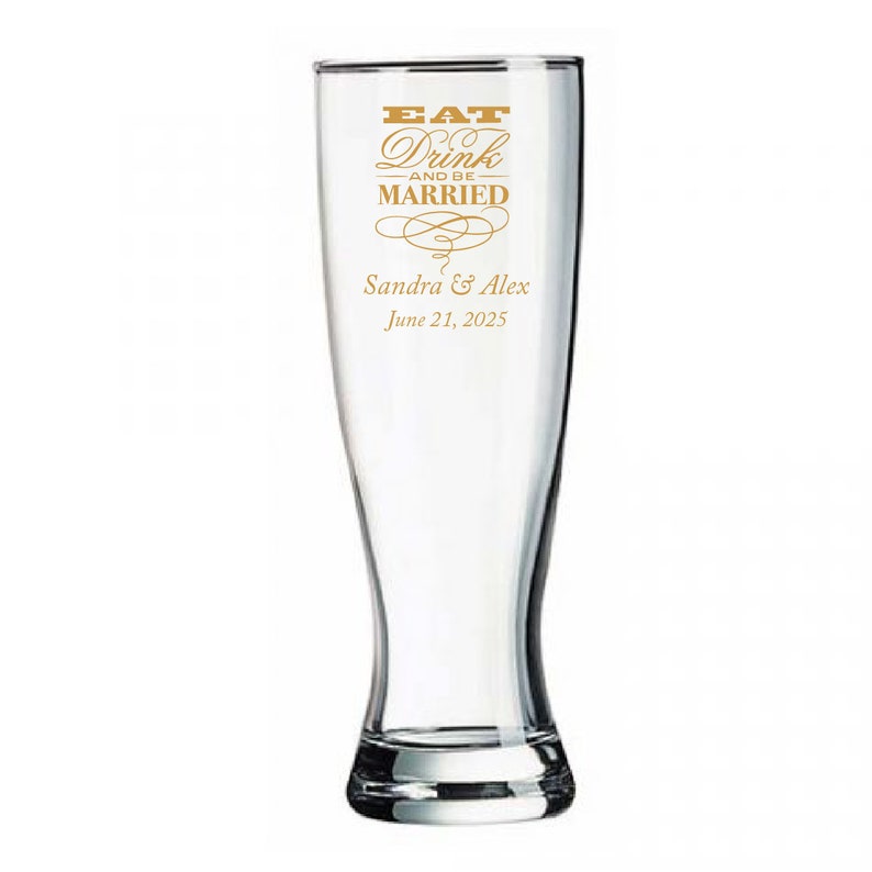 - 24pcs - Personalized Pilsner Glass 16oz - Eat Drink and Be Married Motif - PILS16OZ-EDPP219B