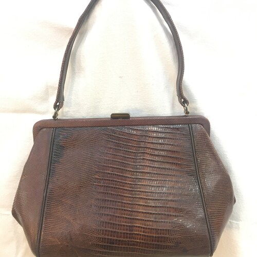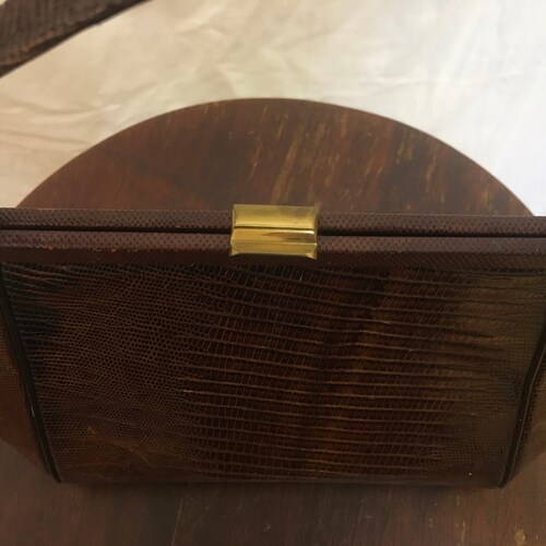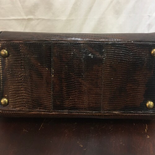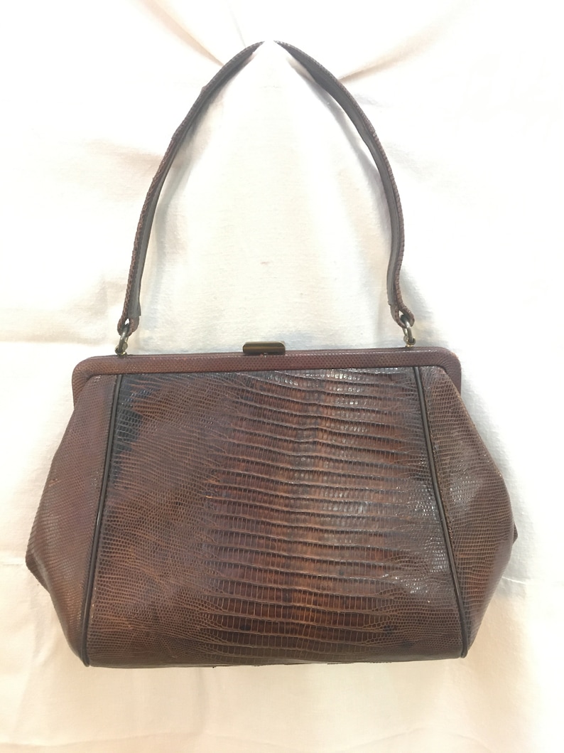 1950's, 7" wide, 10" high, brown lizard skin shops purse, 1950's, 7" wide, 10" high, brown lizard skin purse store