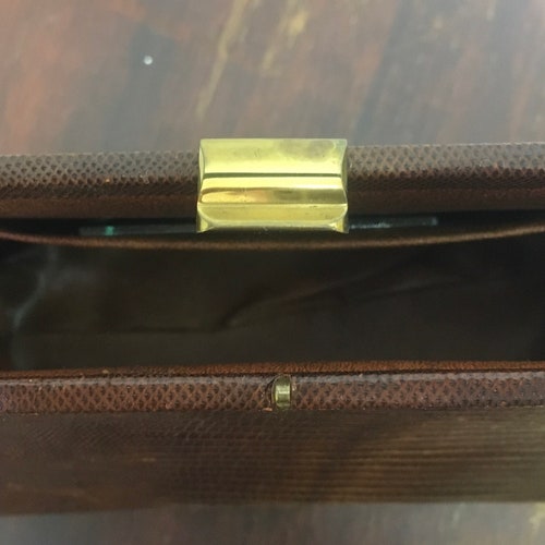 - 1950's, 7" wide, 10" high, brown lizard skin purse