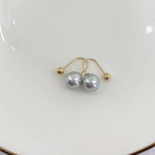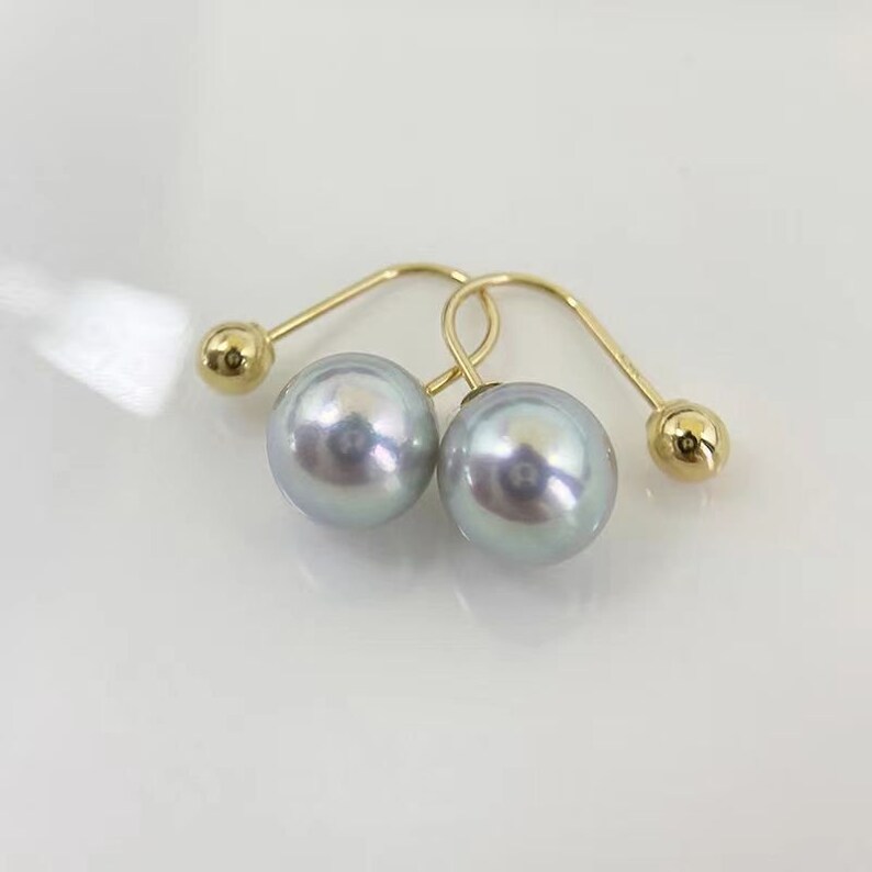 Customized 18K Solid Gold screw back earring studs with Akoya gray pearls shops 7-7.5mm, 8-8.5mm, 18K Real Gold Au750, seawater pearls, Customized 18K Solid Gold screw back earring studs with Akoya gray pearls 7-7.5mm, 8-8.5mm, 18K Real Gold Au750, seawater pearls good