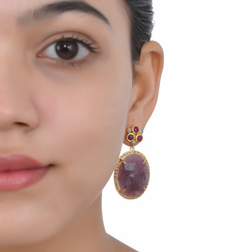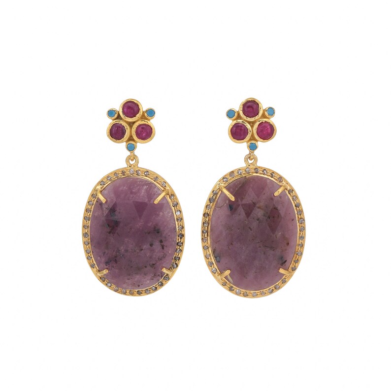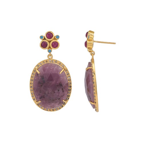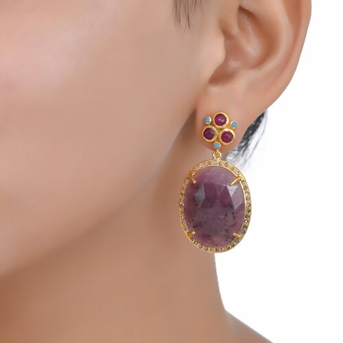 Diamond, Ruby, shops Turquoise & Wonder Saphire 14K Gold Vermeil Over Sterling Silver Earring, Diamond, Ruby, Turquoise & Wonder Saphire 14K Gold Vermeil Over Sterling Silver Earring buy