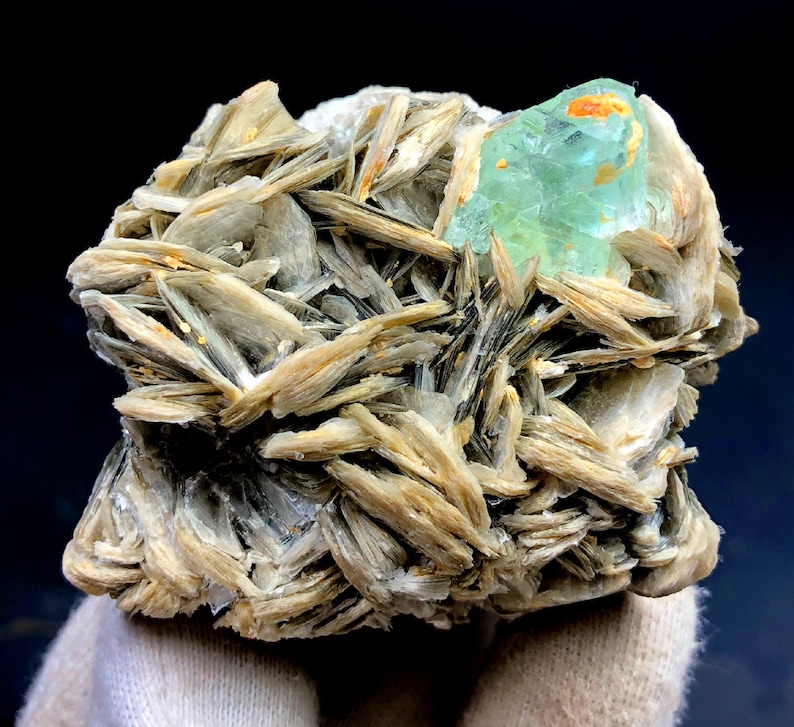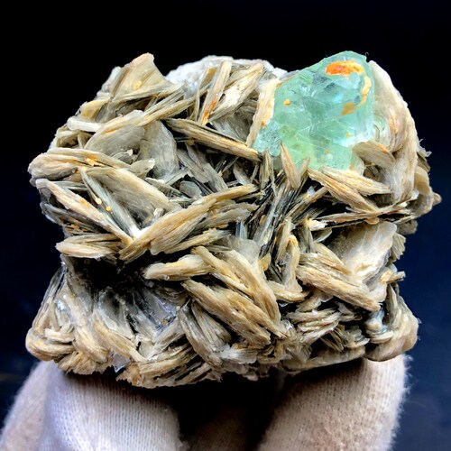 Natural Fluorite Crystal shops With Muscovite Mica Specimen From Pakistan - 101 Gram - 56*46 mm, Natural Fluorite Crystal With Muscovite Mica Specimen From Pakistan - 101 Gram - 56*46 mm popular